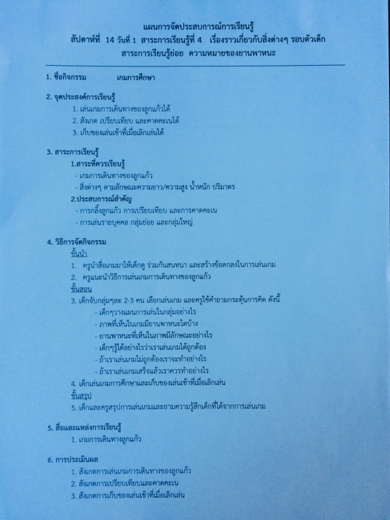 แผนการจัดประสบการณ์ กิจกรรมเกมการศึกษา หน่วยปลอดภัยในยานพาหนะ