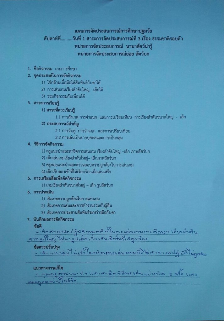 แผนการจัดประสบการณ์กับบันทึกหลังแผน