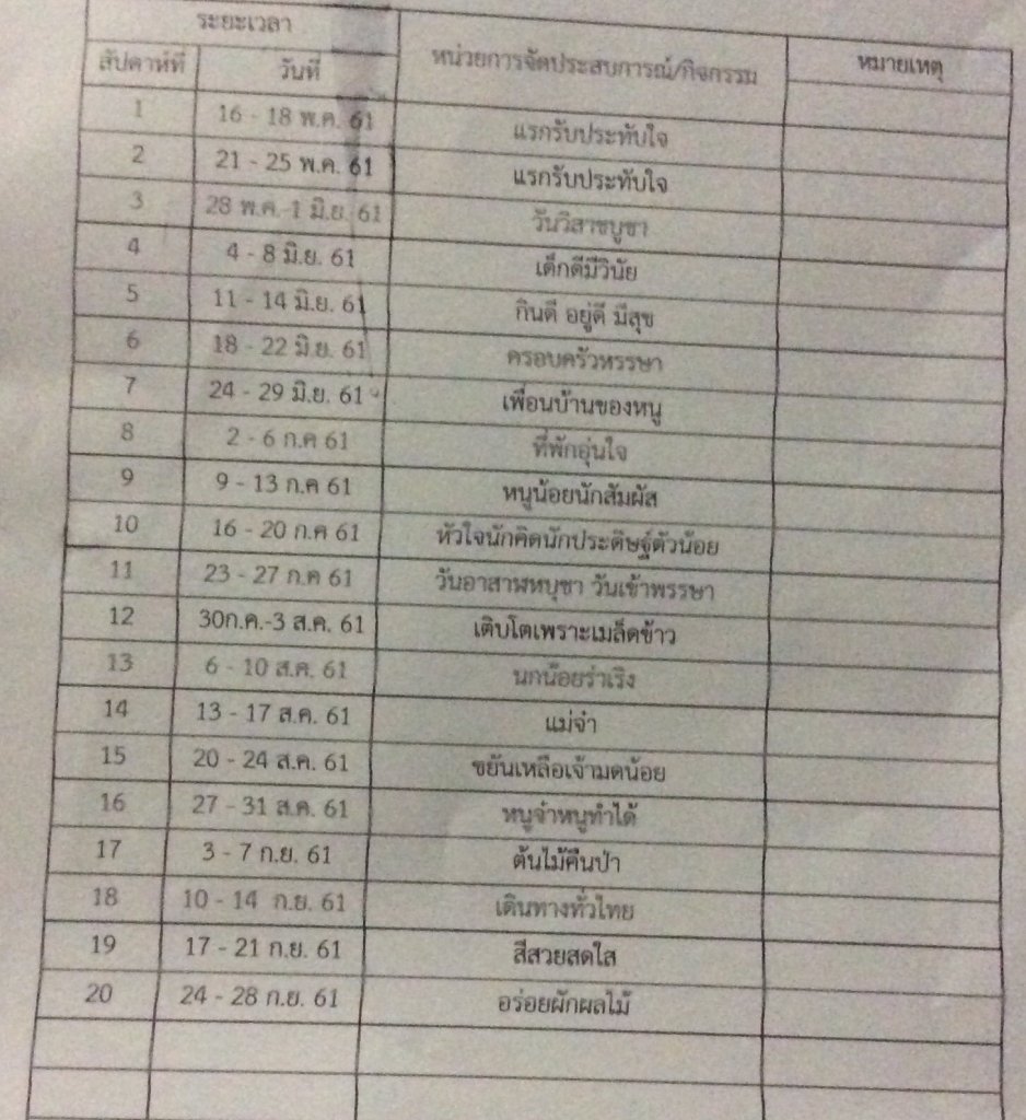 โครงสร้างหน่วยการเรียนตลอดภาคเรียน