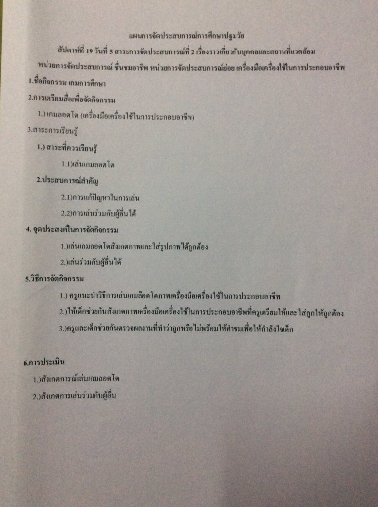 แผนการจัดประสบการณ์