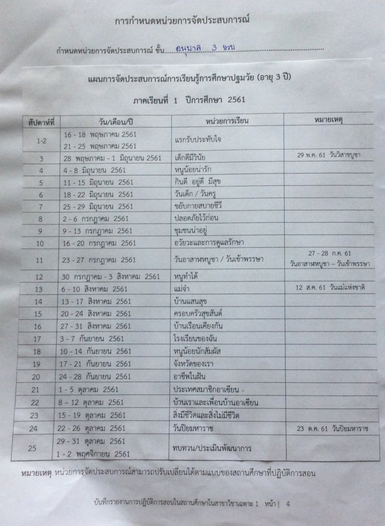 โครงสร้างหน่วยการเรียนตลอดภาคเรียน