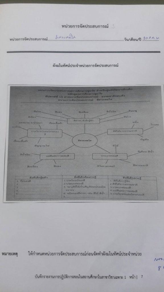 ผังมโนทัศน์ประจำหน่วยการจัดประสบการณ์ สีสวยสดใส ครั้งที่3