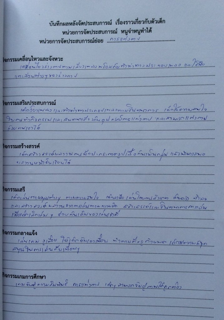 บันทึกหลังแผนการจัดเสริมประสบการณ์ หน่วยหนูจ๋า หนูทำได้