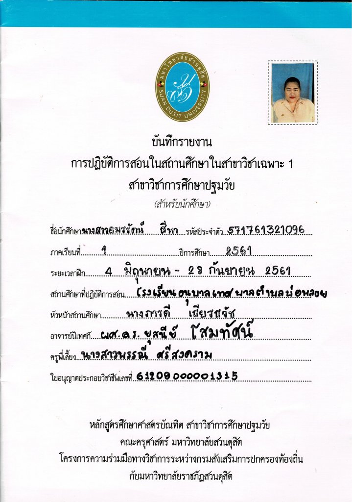 บันทึกรายงานการฝึกปฏิบัติการสอน 1