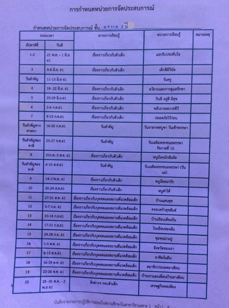 โครงสร้างหน่วยการเรียนตลอดภาคเรียน