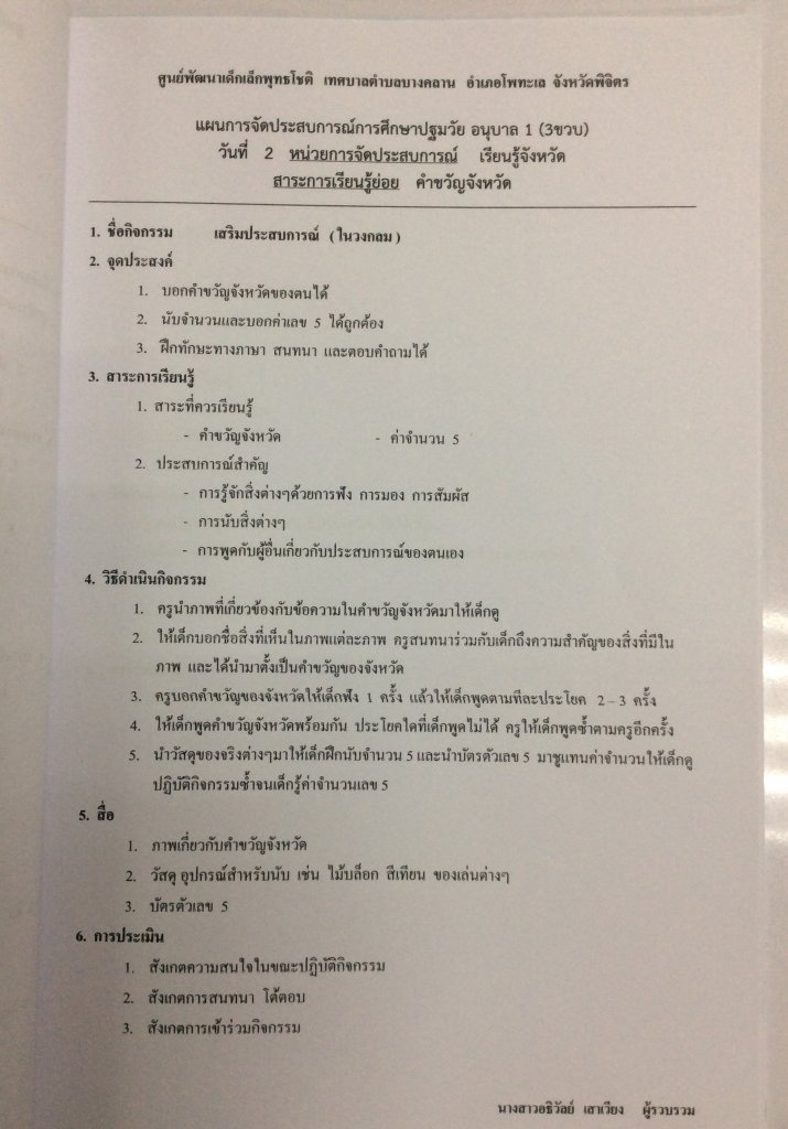 แผนจัดประสบการณ์หน่วยเรียนรู้จังหวัด หน่วยสาระย่อย คำขวัญจังหวัด