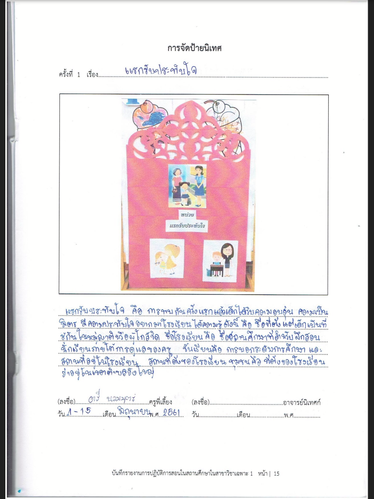 ป้ายนิเทศ หน่วย แรกรับประทับใจ