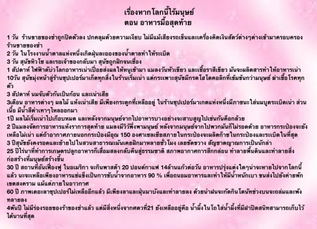 สรุปจากวิดีโอเรื่องหากโลกนี้ไร้มนุษย์ตอนอาหารมื้อสุดท้าย