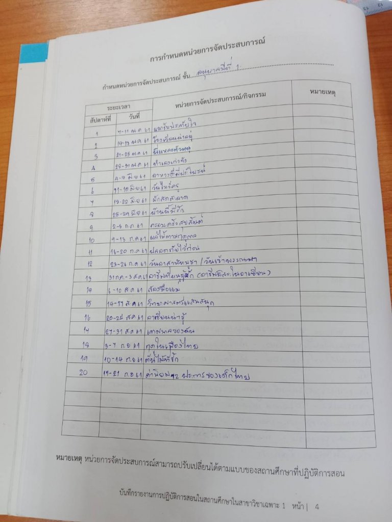 โครงสร้างหน่วยการเรียนตลอดภาคเรียน
