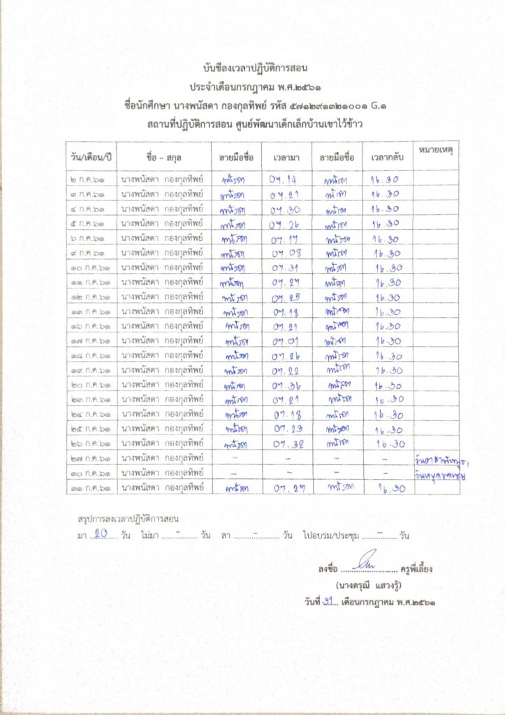 แบบบันทึกการลงเวลาฝึกปฏิบัติงาน