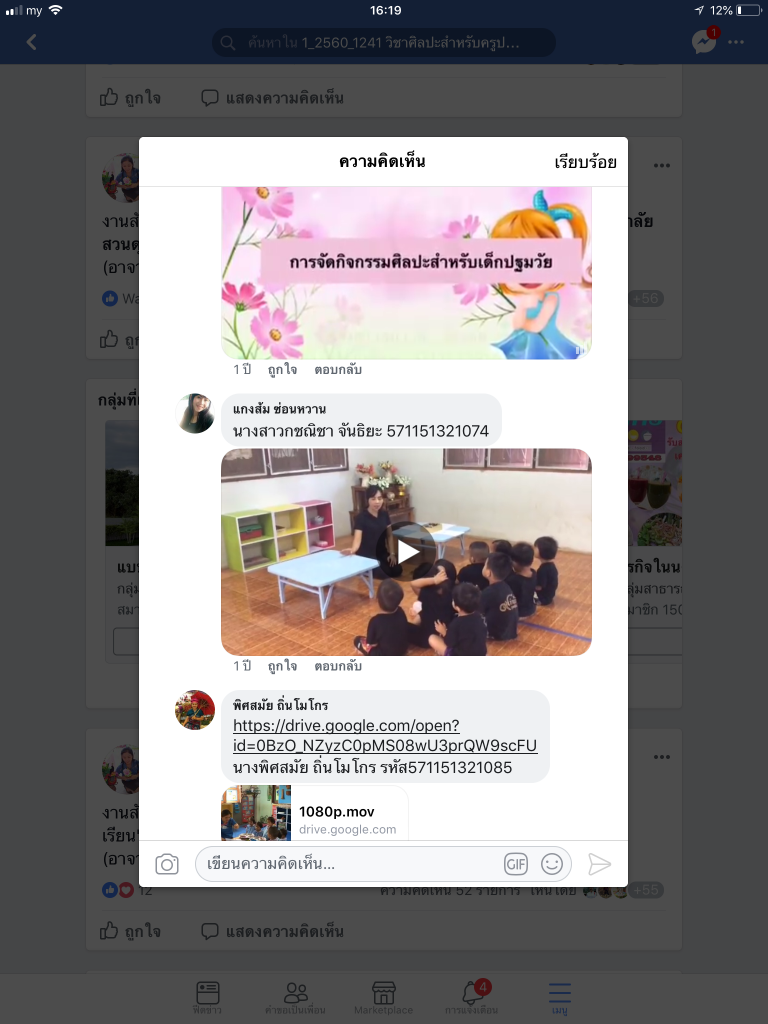 วิดีทัศน์มุมศิลปะในชั้นเรียนของตนเอง (คัดลอกลิ้งค์ไม่ได้เนื่องจากส่งหน้าเฟสกลุ่มวิชา)