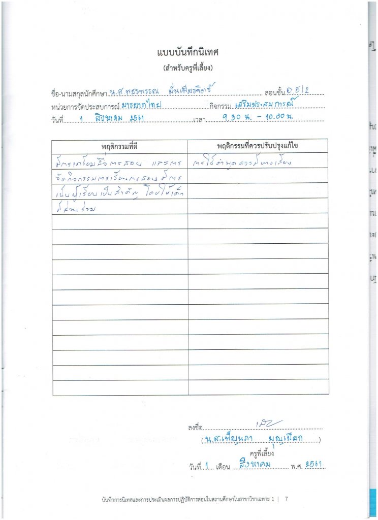 บันทึกการนิเทศ (ครูพี่เลี้ยง)