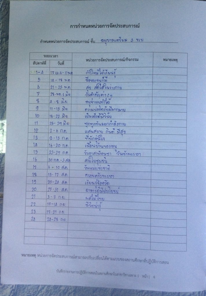 โครงสร้างหน่วยการเรียนตลอดภาคเรียน