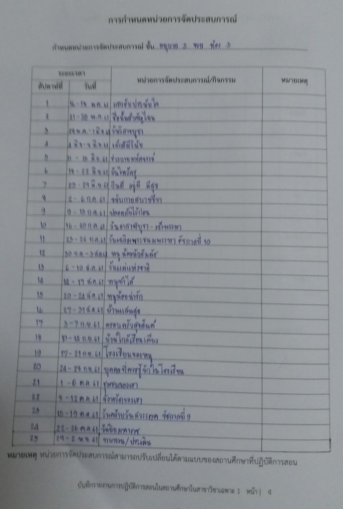 โครงสร้างหน่วยการเรียนตลอดภาคเรียน