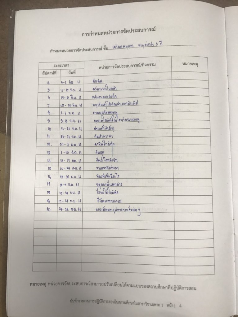 โครงสร้างหน่วยการเรียนตลอดภาคเรียน