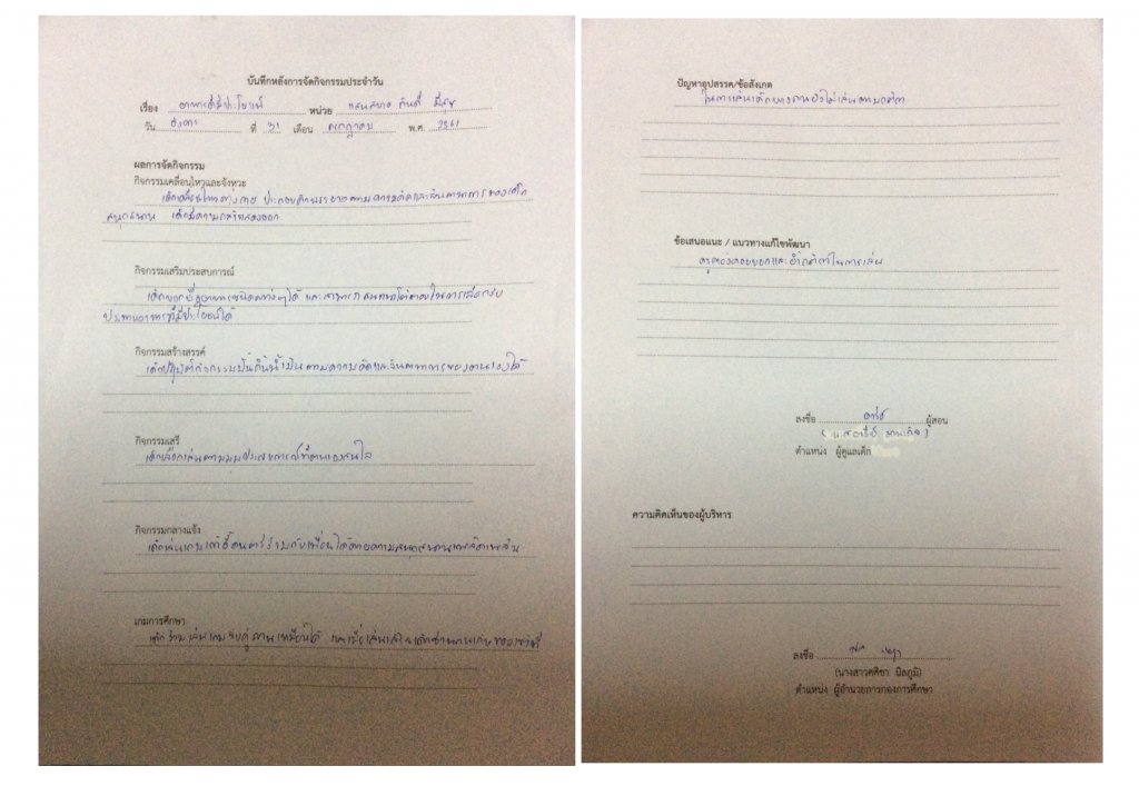 บันทึกหลังการสอน