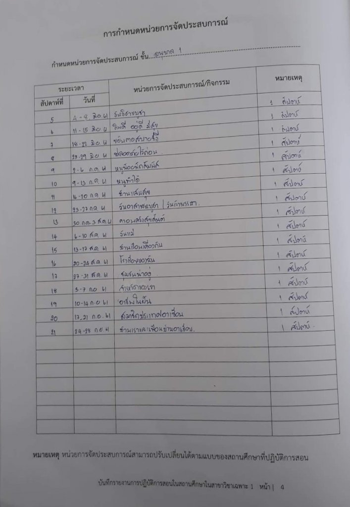 โครงสร้างหน่วยการเรียนตลอดภาคเรียน