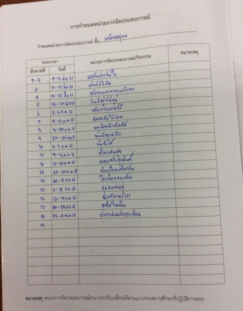 โครงสร้างหน่วยการเรียนตลอดภาคเรียน