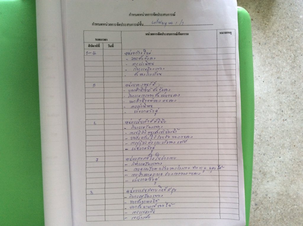 กำหนดหน่วยการจัดประสบการณ์