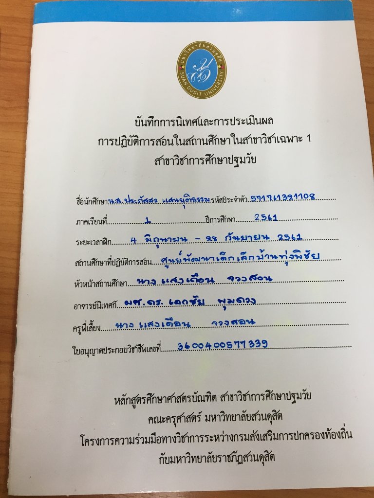 บันทึกการนิเทศและการประเมนผล การปฏิบัติการสอนในสถานศึกษาในสาขาสิชาเฉพาะ