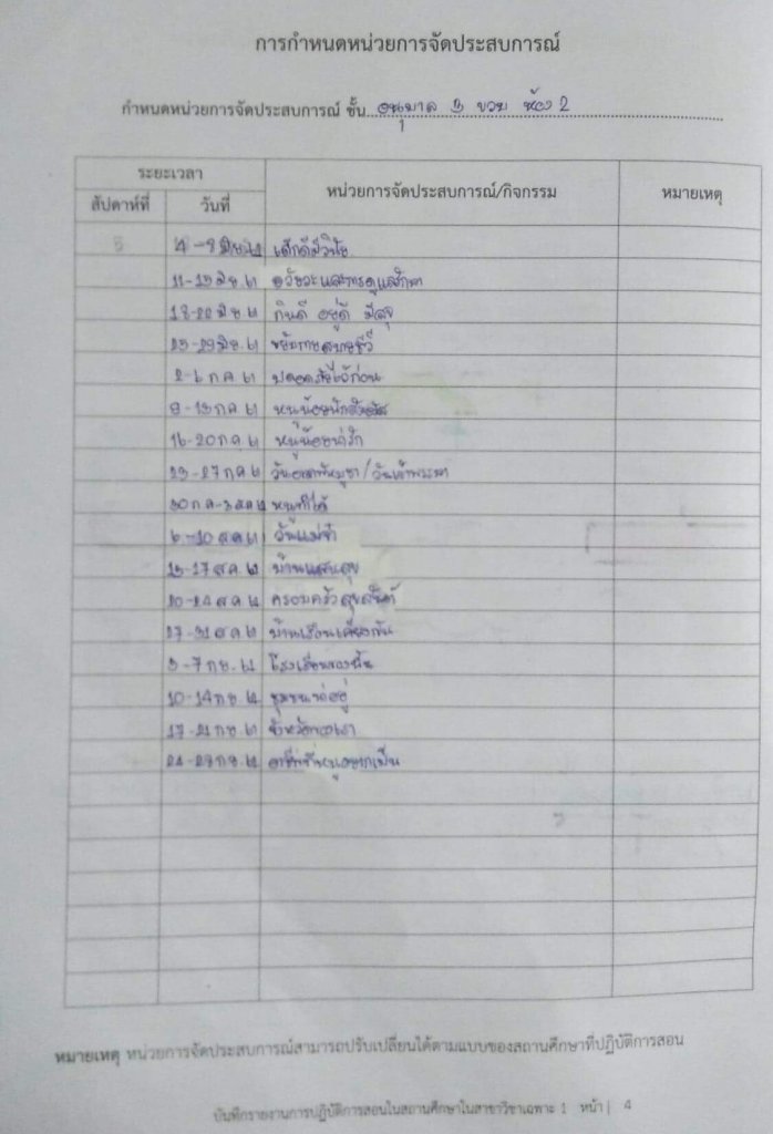 โครงสร้างหน่วยการเรียนตลอดภาคเรียน