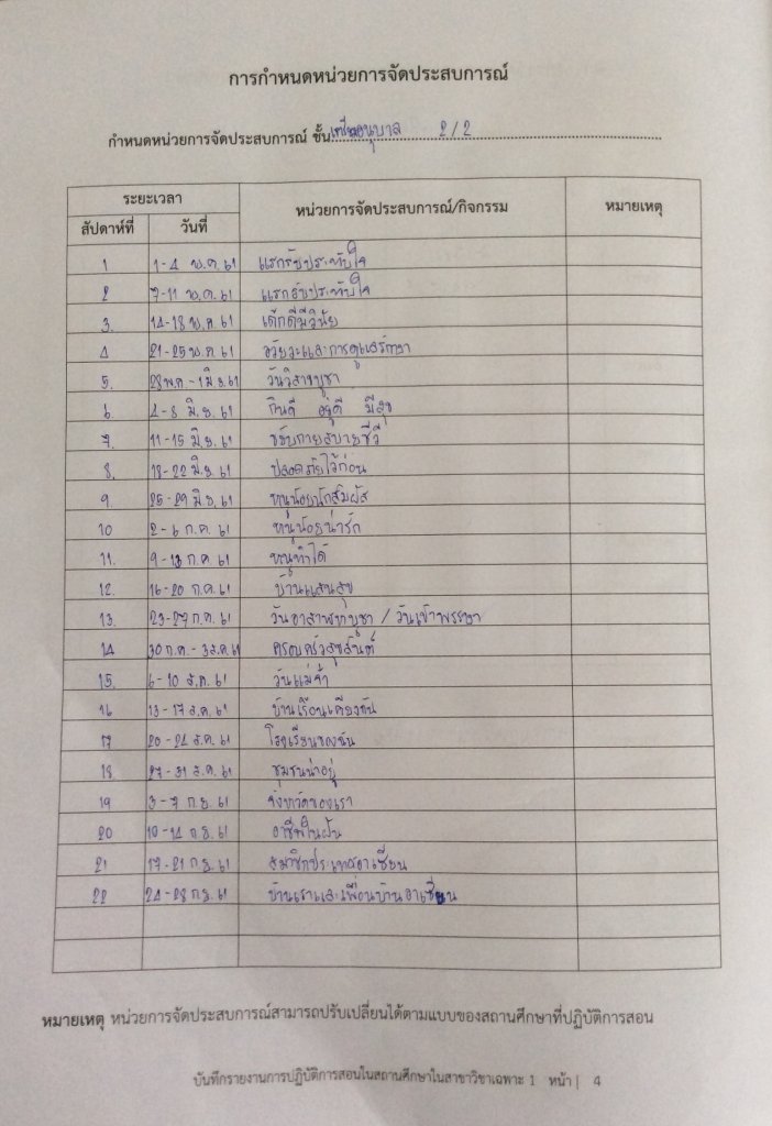โครงสร้างหน่วยการเรียนตลอดภาคเรียน