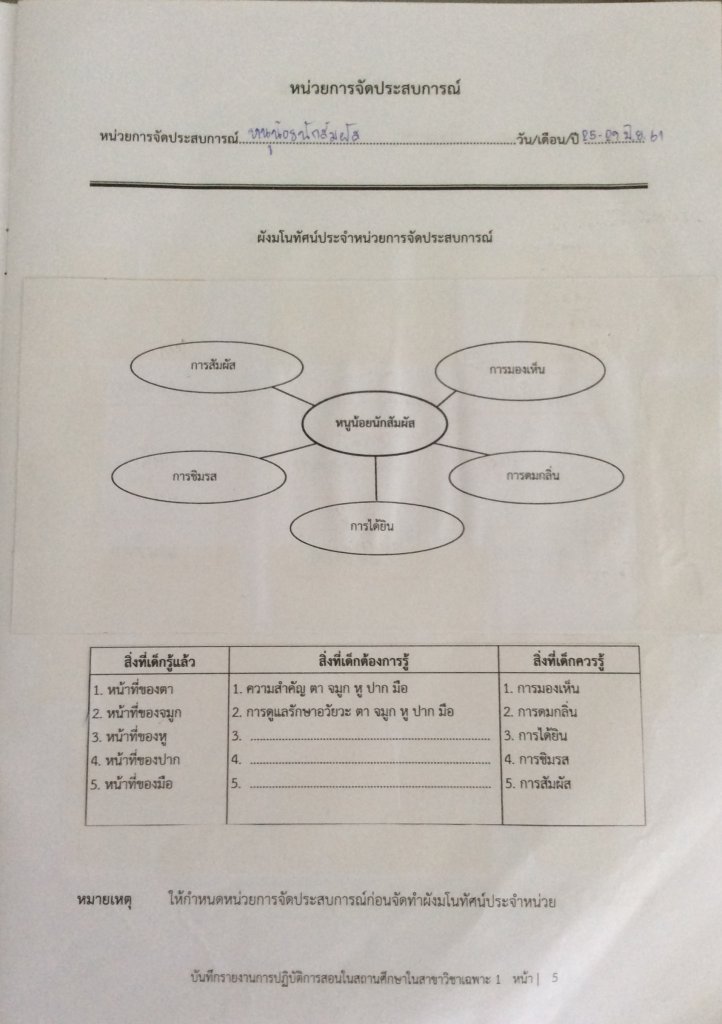 แผนผังมโนทัศน์ประจำหน่วยการเรียน หน่วยหนูน้อยนักสัมผัส