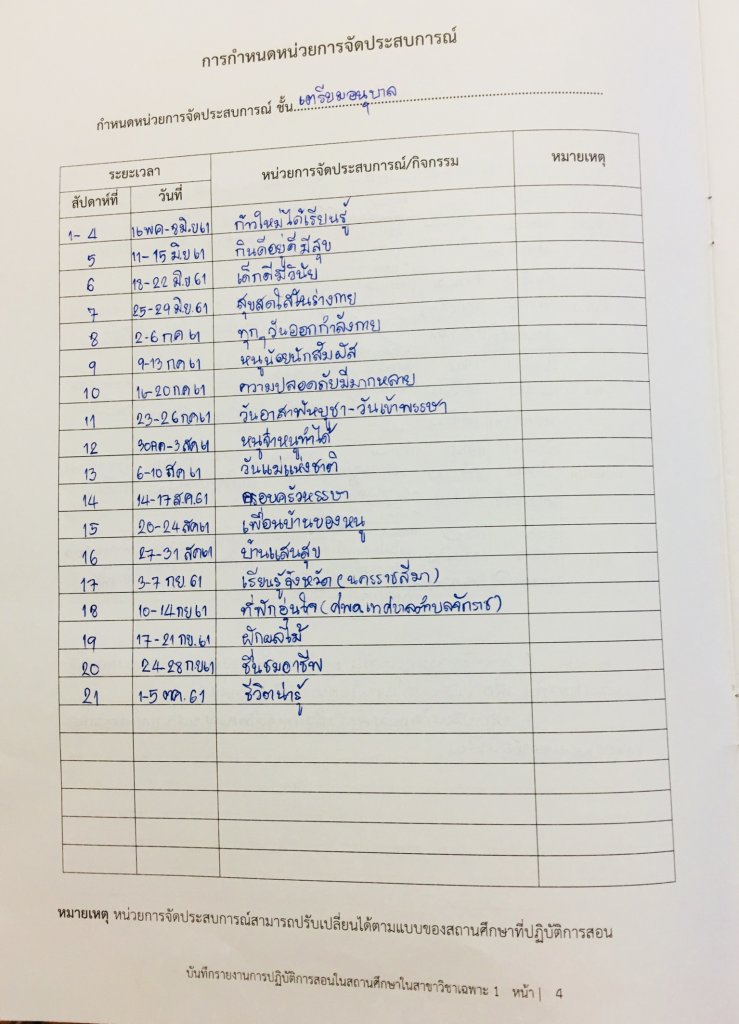 โครงสร้างหน่วยการจัดประสบการณ์ตลอดภาคเรียน