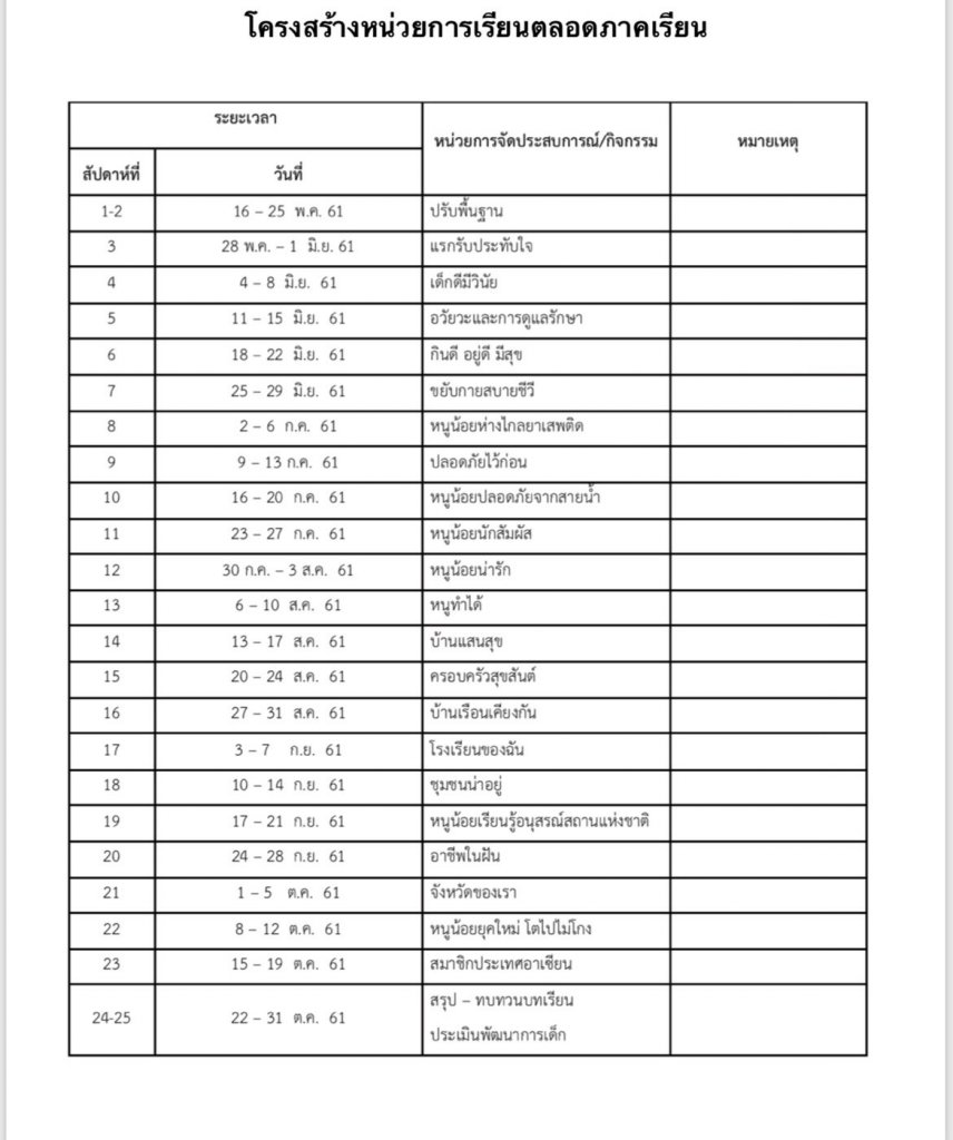 โครงสร้างหน่วยการเรียนตลอดภาคเรียน
