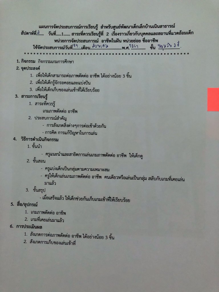 แผนการจัดประสบการณ์