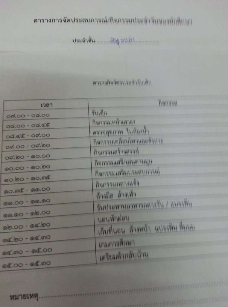 ตารางการจัดประสบการณ์