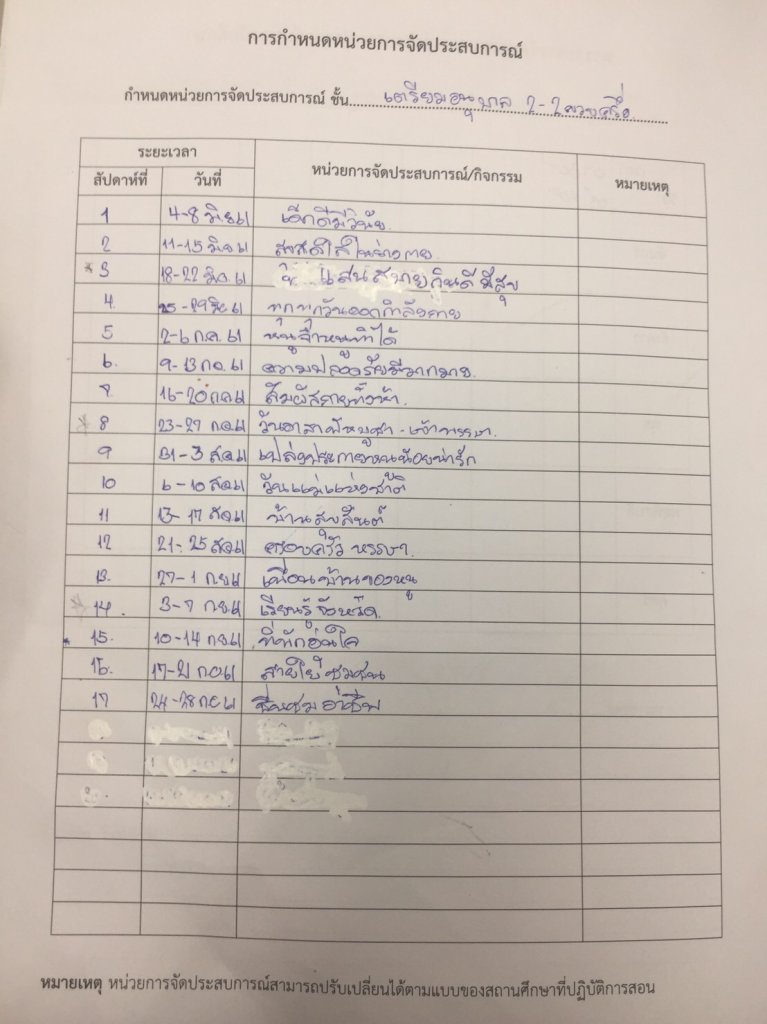 โครงสร้างหน่วยการเรียนตลอดภาคเรียนที่ 1