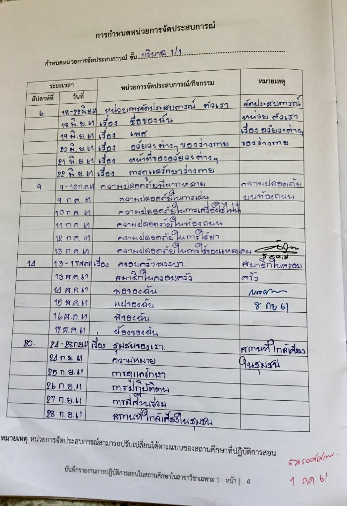 โครงสร้างหน่วยการเรียนทั้งภาคเรียน