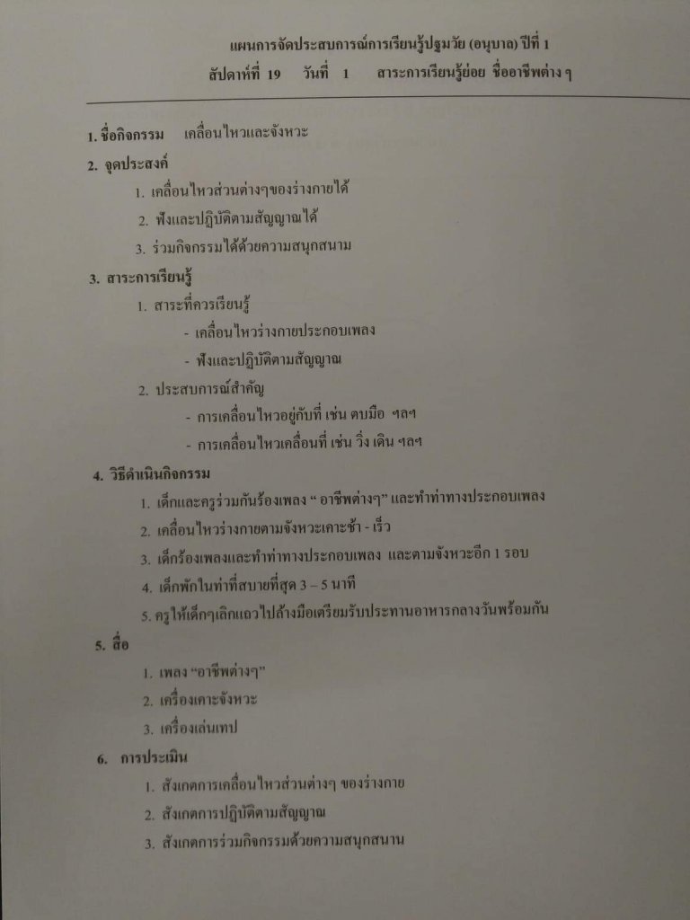 แผนการจัดประสบการณ์ กิจกรรมเคื่อนไหวและจังหวะ