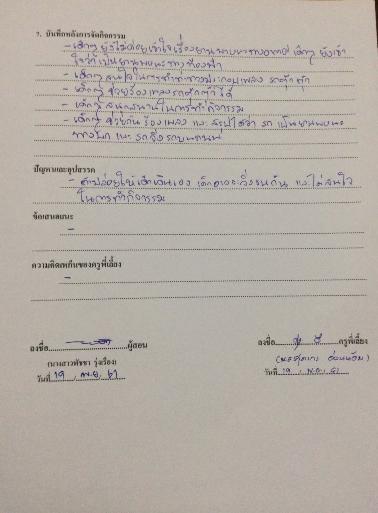 บันทึกหลังการจัดประสบการณ์