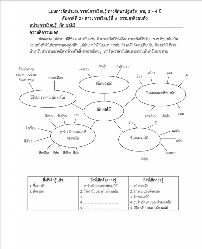 ผังมโนทัศน์ หน่วยผัก ผลไม้