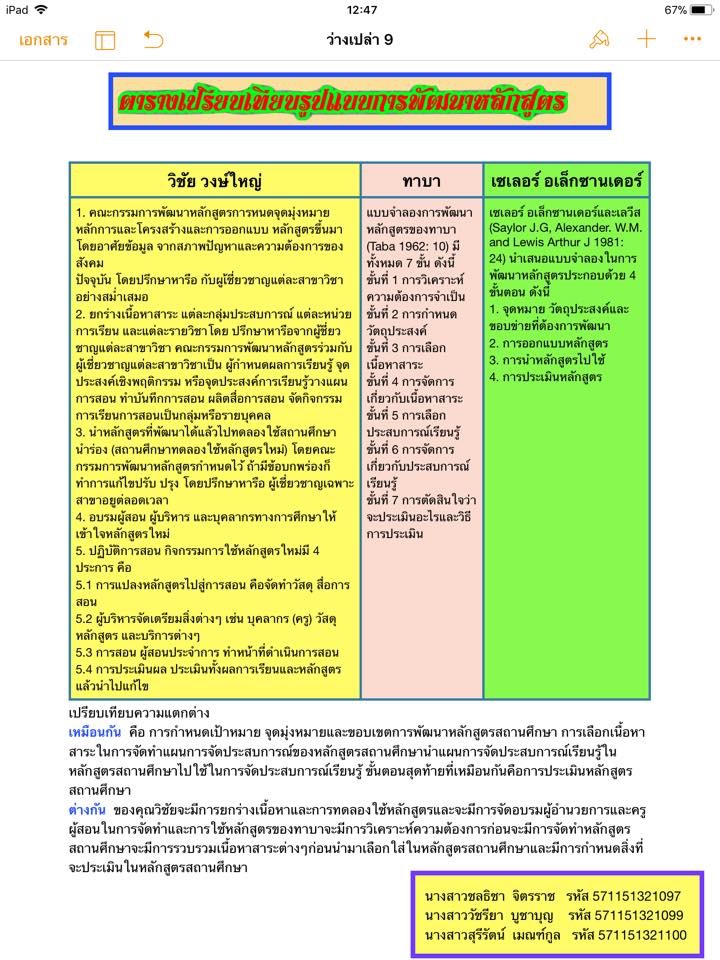 สัปดาห์ท่ี4 งานที่1 การเปรียบเทียบรูปแบบการพัฒนาหลักสูตร งานกลุ่ม