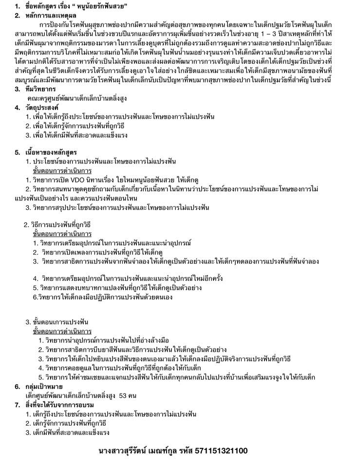 สัปดาห์ที่ 7 “การออกแบบหลักสูตรระยะสั้นสำหรับเด็กปฐมวัยด้วยกระบวนทัศน์