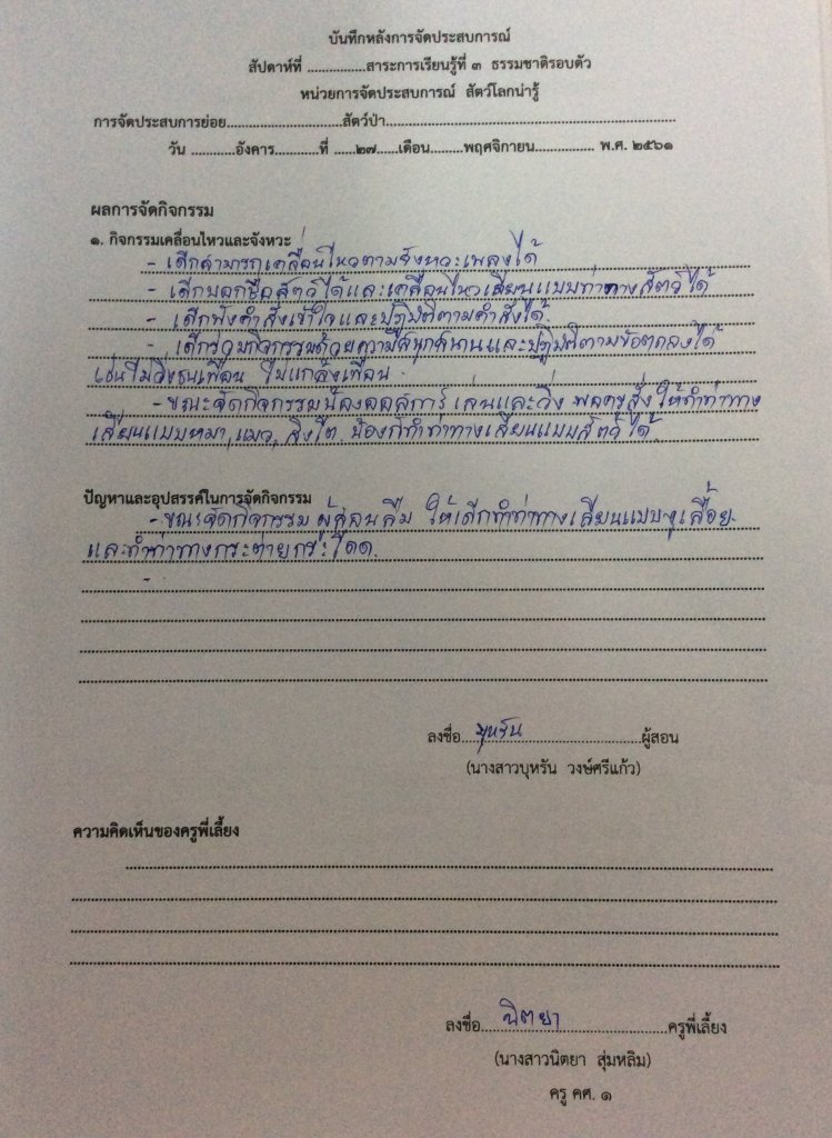 บันทึกหลังการจัดประสบการณ์