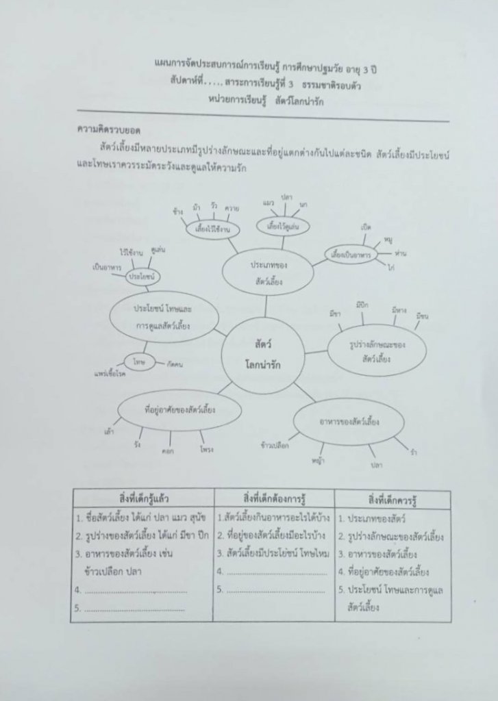 ผังมโนทัศน์ แผนการจัดประสบการณ์ หน่วยการเรียนรู้ สัตว์โลกน่ารัก