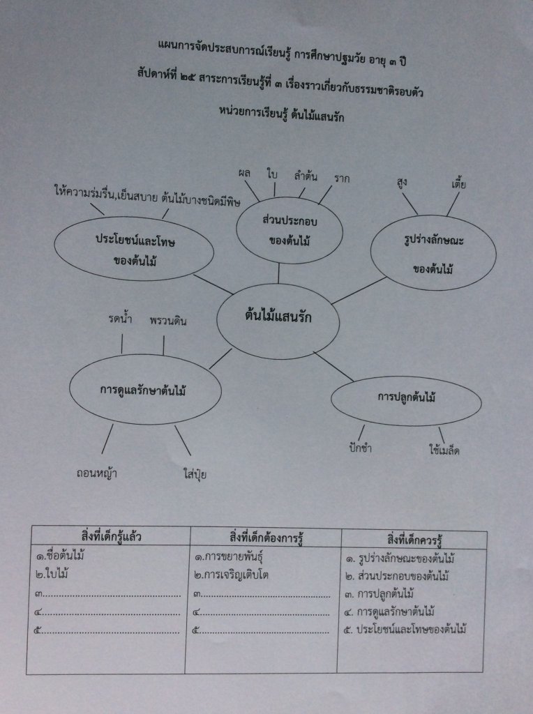 แผนผังมโนทัศน์หน่วยต้นไม้แสนรัก