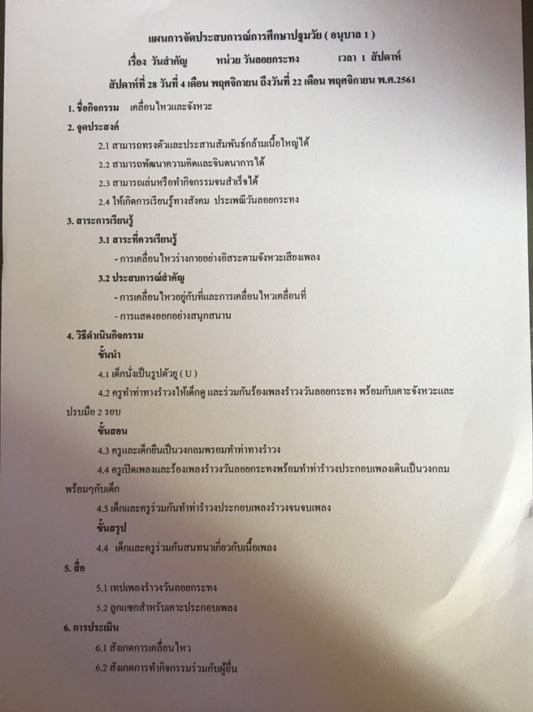แผนการจัดประสบการณ์การเรียนรู้ หน่วย วันลอยกระทง