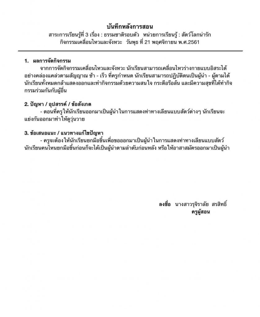 บันทึกหลังสอน