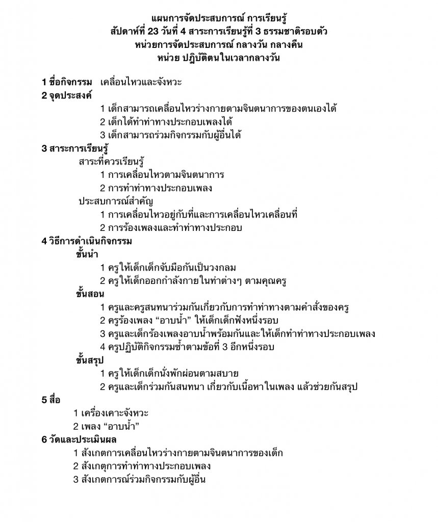 แผนการจัดประสบการณ์
