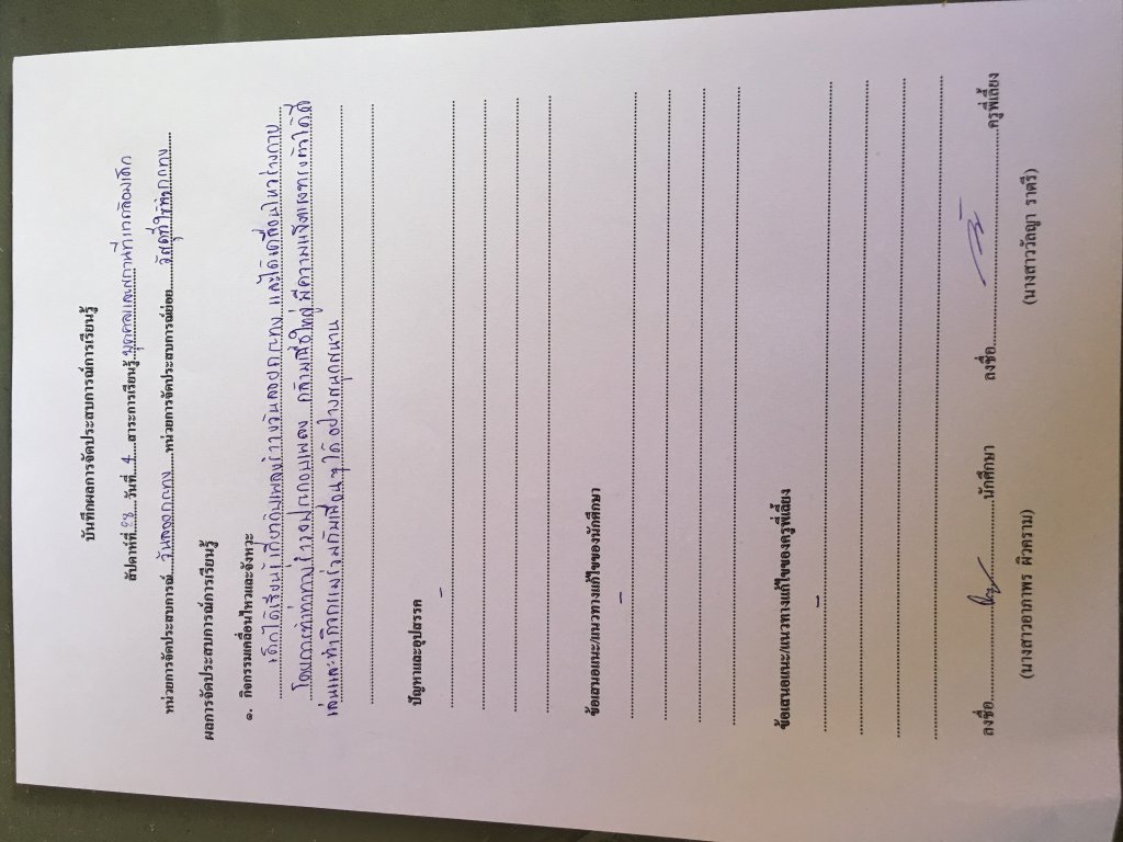 บันทึกผลการจัดประสบการณ์การเรียนรู้