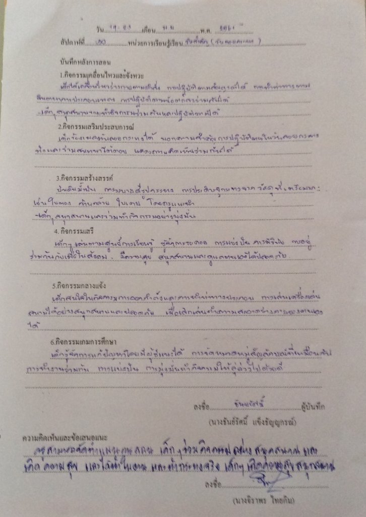 บันทึกหลังการจัดประสบการณ์
