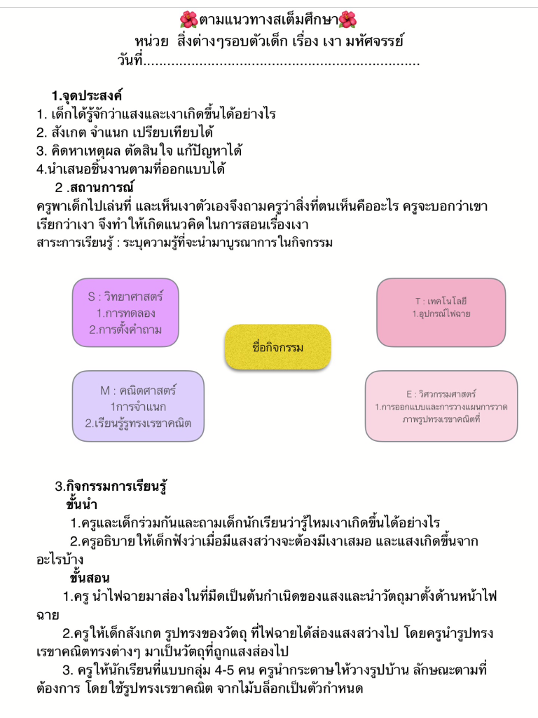 การออกแบบการจัดประสบการณ์ตามแนวสะเต็มศึกษา