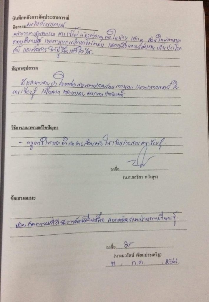 บันทึกหลังการจัดประสบการณ์