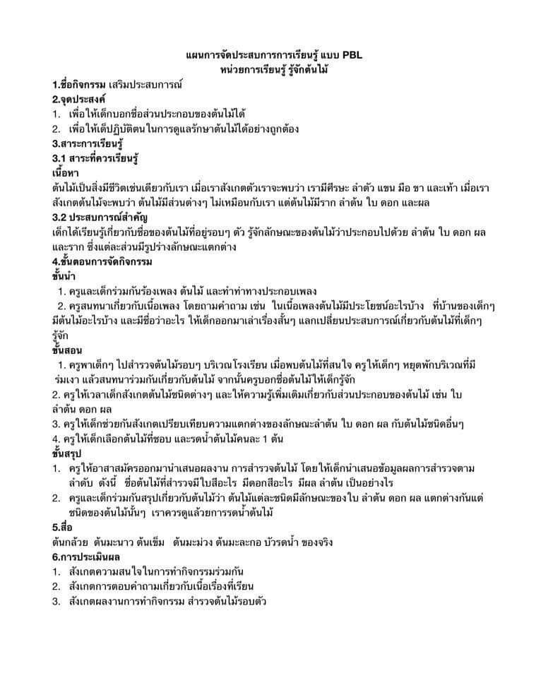 แผนการจัดประสบการณ์การเรียนรู้แบบ PBL