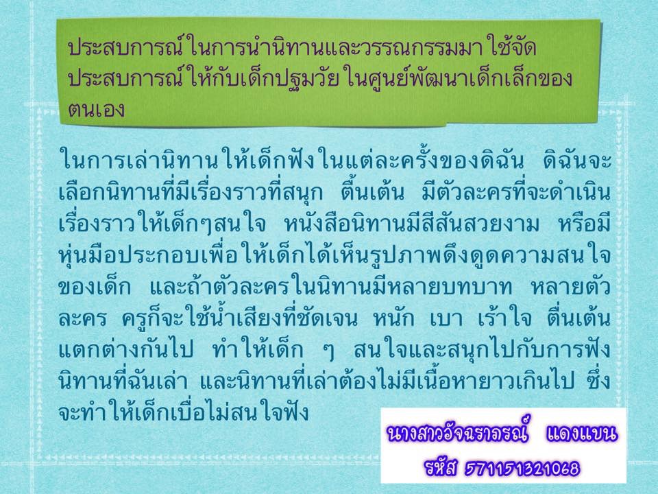 ประสบการณ์ในการนำนิทานแบะวรรณกรรมมาใช้ในศพด.